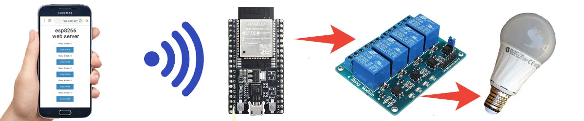 The relays will be controlled via a mobile phone using a web-based interface. In this tutorial, we turn the ESP8266 microcontroller into a small web server that you can connect to with your mobile phone, just like connecting your phone to a Wi-Fi modem.